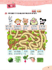 1 아래의 동물들이 각각 어떤 보물을 찾을지 미로를 통과하여 알아 봅시다.