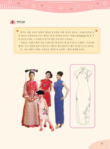 이 있나요? 바로 그 치파오가 중국의 전통 의상 중의 하나예요.