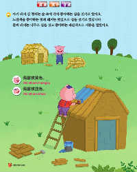 노란색을 좋아하는 첫째 돼지는 볏짚으로 집을 짓기로 했답니다. 첫째 돼지와 둘째 돼지가 막내 돼지의 집을 보고 정말 예쁘다고