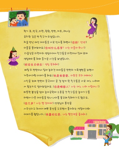 처음 만난 여섯 아이들은 서로 인사를 하면서 (你好 ! 안녕!)