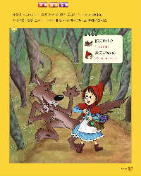 엄마가 말씀하신 대로 할머니께 드릴 과일을 샀어요. 겁이 없는 빨간 모자는 늑대에게 할머니 댁에 간다고 말해주었어요.